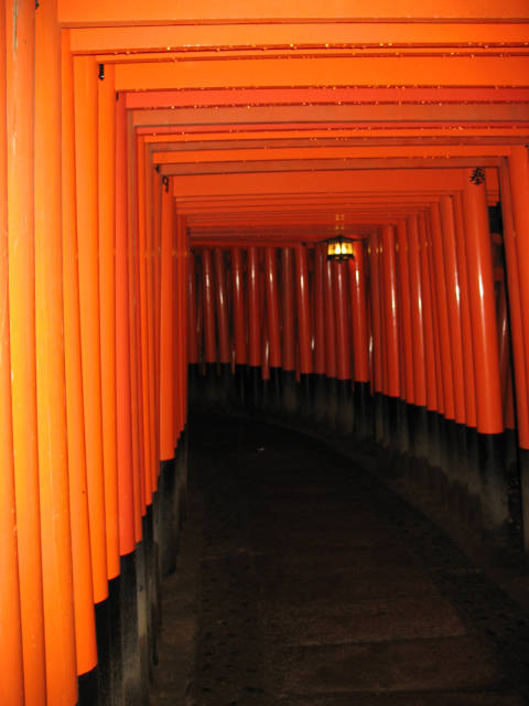 Der Fushimi Inari wurde im 8 Jahrhundert dem Gott des Reises und des Sakes gespendet. Das Schreingelände besteht aus 5 Schreinen, die auf einem Berg verteilt liegen. Die gesamte Strecke beträgt etwa 4 km und ist bestückt mit einer unzählbaren Menge roter Tore und Steinfüchse (Füchse sind die Boten des Inari). Ziemlich beeindruckend!