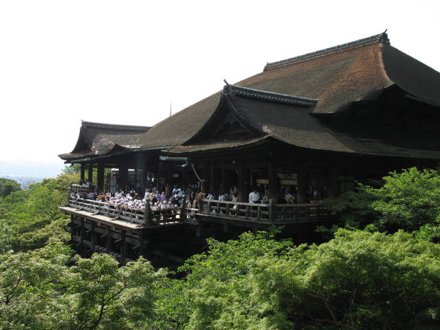 Das bekannteste Gebäude des Kiyomizu-Dera ist die Haupthalle mit ihrer großen Veranda. Diese steht auf 139 15m hohen Holzpfeilern und ist komplett ohne Nägel gebaut! Von dort aus hat man auch einen tollen Blick über Kyoto.